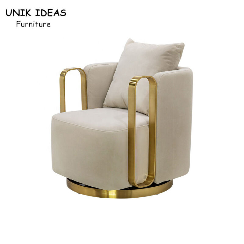 El acero inoxidable ofrecido del oro más el negro de gama alta del gorgeour, proceso, incluso uso a largo plazo no cambia moho del color. Ésta es silla del sofá del salón puede girar.