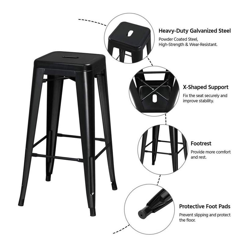 | Resaltar: | Alta silla de la barra de pie del hierro apilable,Alta silla los 76CM de la barra de pie,Taburete de bar apilable industrial |